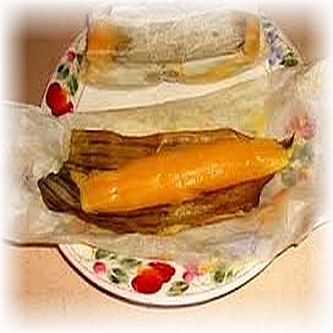 filling in the center of the masa Fold the leaf one half over the other to make
